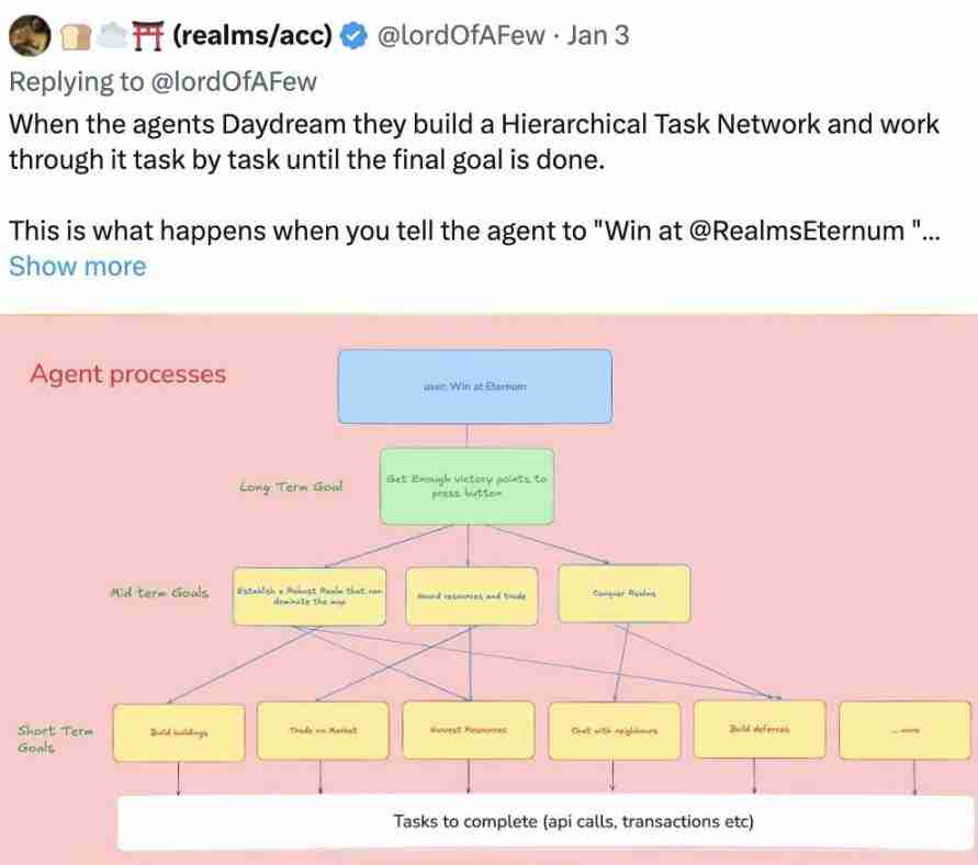 ElizaOS v2引入了分层任务网络(HTNs),允许AI将高级目标分解为一系列结构化步骤,并根据环境变化动态调整计划。例如,一个AI投资管理智能体可以分析市场状况、动态调整投资组合并独立执行交易。HTNs提升了AI的决策能力,拓展了其在金融、物流等领域的应用。