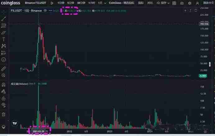 FIL曾于2021年Q1达到238美元的高点,目前已横盘四年。近期受利好消息影响,FIL价格一度突破6美元。突破20美元压力位将打开其上涨空间。