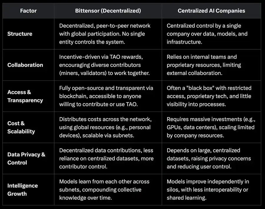 Bittensor 的使命是让 AI 更加民主化,使其更易于获取,并减少由少数大公司控制的情况。