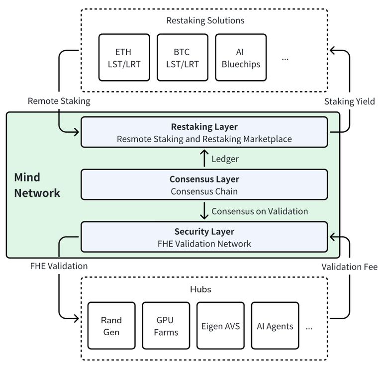 安全层是Mind Network FHE 验证网络的核心安全服务,由多个独立的FHE验证器组成。