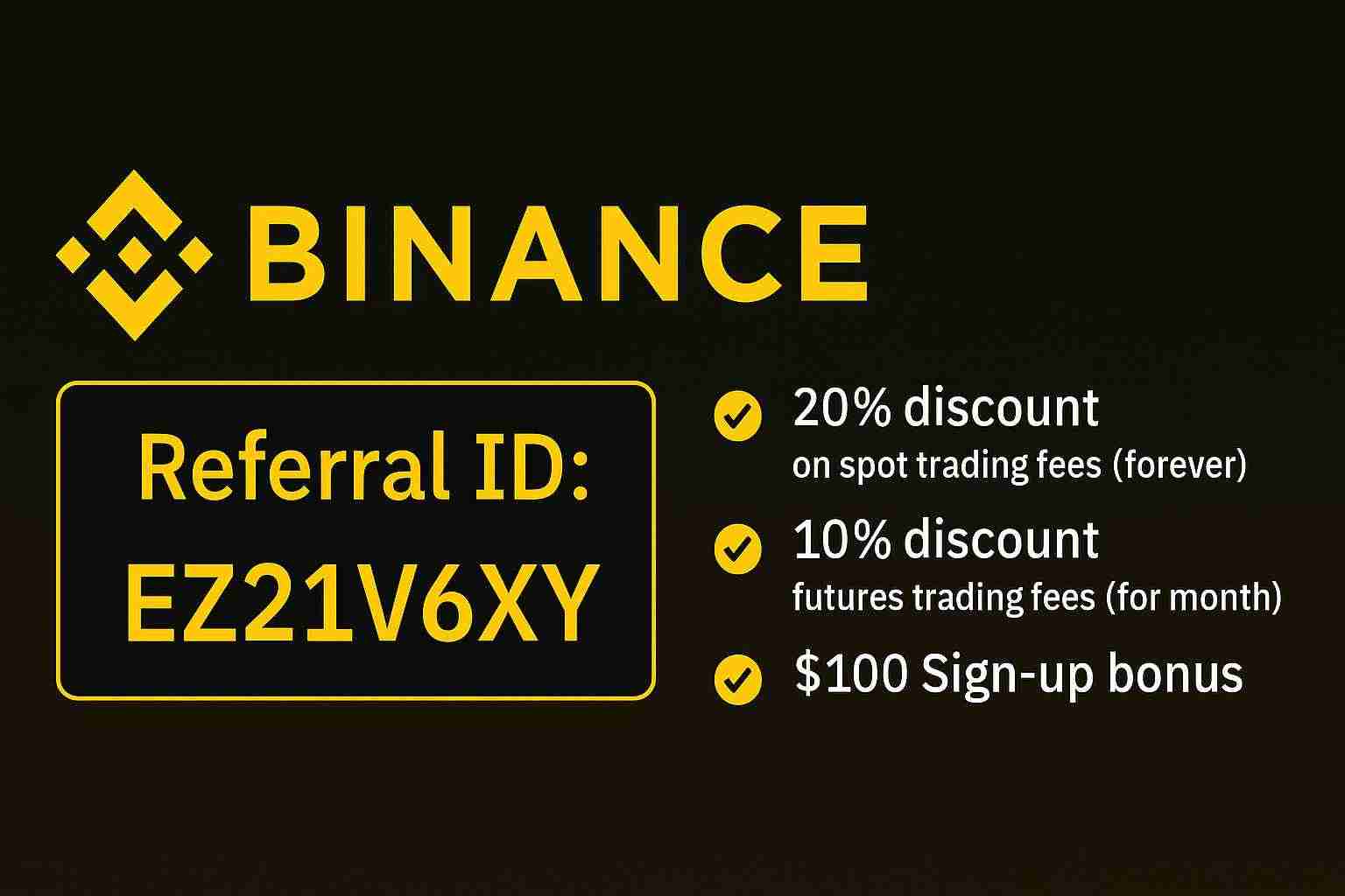 Binance注册奖金2025 – 如何使用Binance推荐ID促销代码? 解锁binance高达100美元注册奖金!2025年,binance为新用户提供诱人注册奖励。使用推荐id代码ez21v6xy,即可获得最高100美元的奖金券和终身20%交易费折扣! 还在犹豫是否加入全球领先的加密货币交易所Binance?现在就行动,使用推荐代码或链接注册新账户,轻松激活您的专属福...