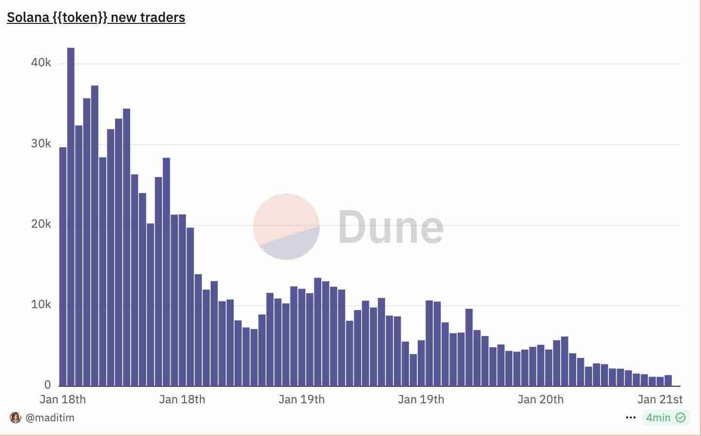 一览TRUMP币交易链上MVP结算画面 $trump交易狂潮已过,是时候回顾这四天的链上数据了。 $TRUMP吸引了929,543名新用户参与链上交易,其用户增长曲线呈现幂律分布,在1月18日11时(北京时间)达到峰值42,208/小时,随后迅速回落,至今日16时(北京时间)降至1383/小时。 截至目前,“$TRUMP阴谋集团”(仅卖出...